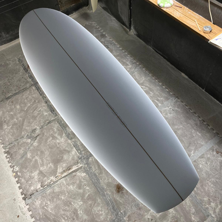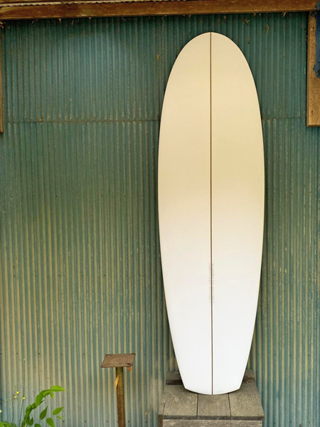 良くできたディスプレイスメント・ハルに馴染んだサーファーは知っている通り、幅広くても長さがあっても波のフェイスでの超滑らかで不思議な無重力系の動きは、このスモール・プラットフォームとアウトラインの志向と組み合わされることで、水すましになっちゃうわけです。